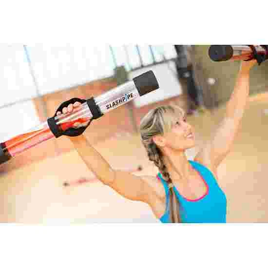 This training product is a water-filled pipe. It is 50-cm long and has a hand strap for optimum hold. The water in the pipe is coloured blue or orange. The colours serve no particular purpose, but are simply visually pleasing. Whether as part of personal or group training, for gymnastics exercises or for functional training at home – the Slashpipe is easy to use anywhere and offers you a varied workout thanks to the different exercise possibilities. It can be compactly stored away after your fitness training.